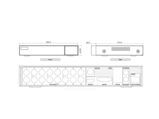 DVR-UVR-232-16-2M DVRs, 16 CH 2MP 5-in-1: HD-TVI/CVI/AHD/Analog/ IP (ALL-up to 16 x 2MP IPC): Up to 2MP Resolution, H.265+, Recording 120FPS@1080p; 1/1 1-Way Audio