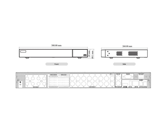 DVR-UVR-332-16-5M DVRs, 16 CH 5MP Lite 5-in-1: HD-TVI/CVI/AHD/Analog/ IP (ALL-up to 16 x 5MP IPC) Up to 5MP Lite Resolution, Recording 96FPS@5MP 1/1 1-WayAudio,