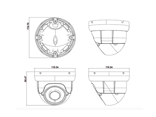 TA-ETVV9TQ4-W/G 2MP Eyeball Dome 1/2.8" SONY Starvis CMOS Sensor, 1080P, 2.8 ~12mm VF Lens, With IR-CUT, WDR, 3DNR, Defog, Sense-up, Smart IR, White/Dark Gray
