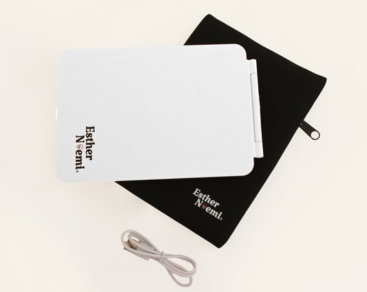 Esther Noemi Rechargeable Travel Makeup Mirror with Lights, Neoprene case-Pink, White