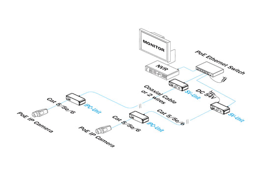 TI-EPC510K-V2 Ethernet Extender Convertor; COAX, Two Wire; Point to Point, PoE Powered Input and Output.