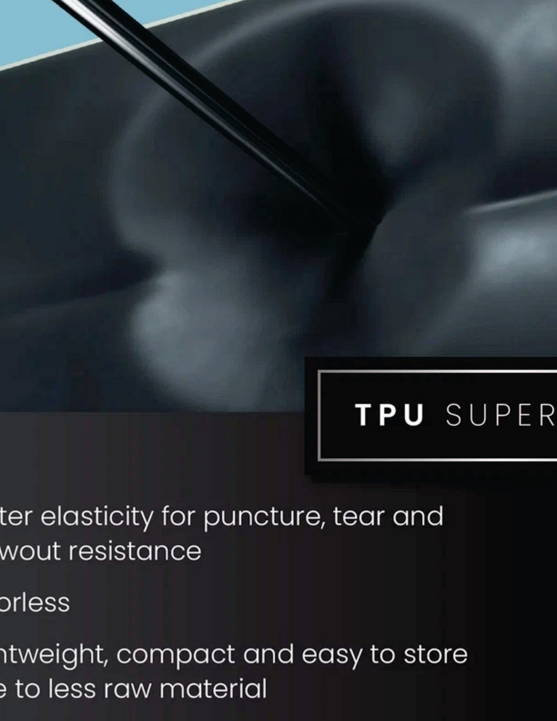 Experience the perfect blend of comfort and durability with this camping mat. Crafted from 12-gauge, laminated TPU material, it is not only resilient but also free from harmful substances such as BPA and phthalates. This makes it a safer choice for you and the environment. Moreover, the mat is significantly more puncture-resistant than PVC, ensuring that it can withstand rugged terrains and provide you with a comfortable sleep.