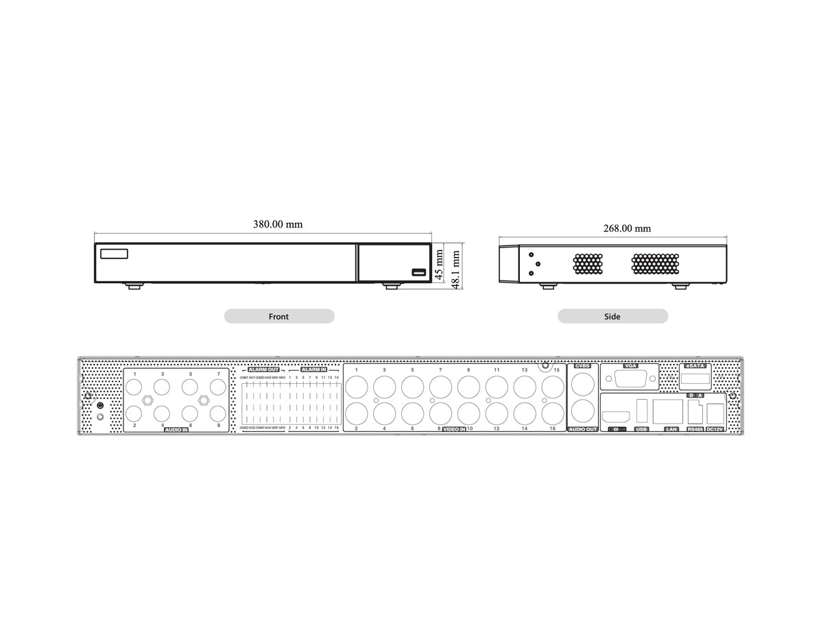 - 16 CH TVI / AHD / CVI 8MP / 5MP / 4MP / 3MP / 1080P / 720P / WD1 video input